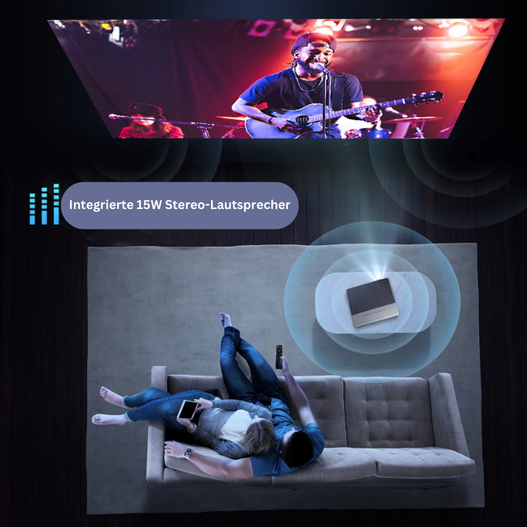 Ja, der LUMEO GIGA verfügt über integrierte 15W HiFi-Stereo-Lautsprecher mit SRS Sound-System für ein beeindruckendes Klangerlebnis.